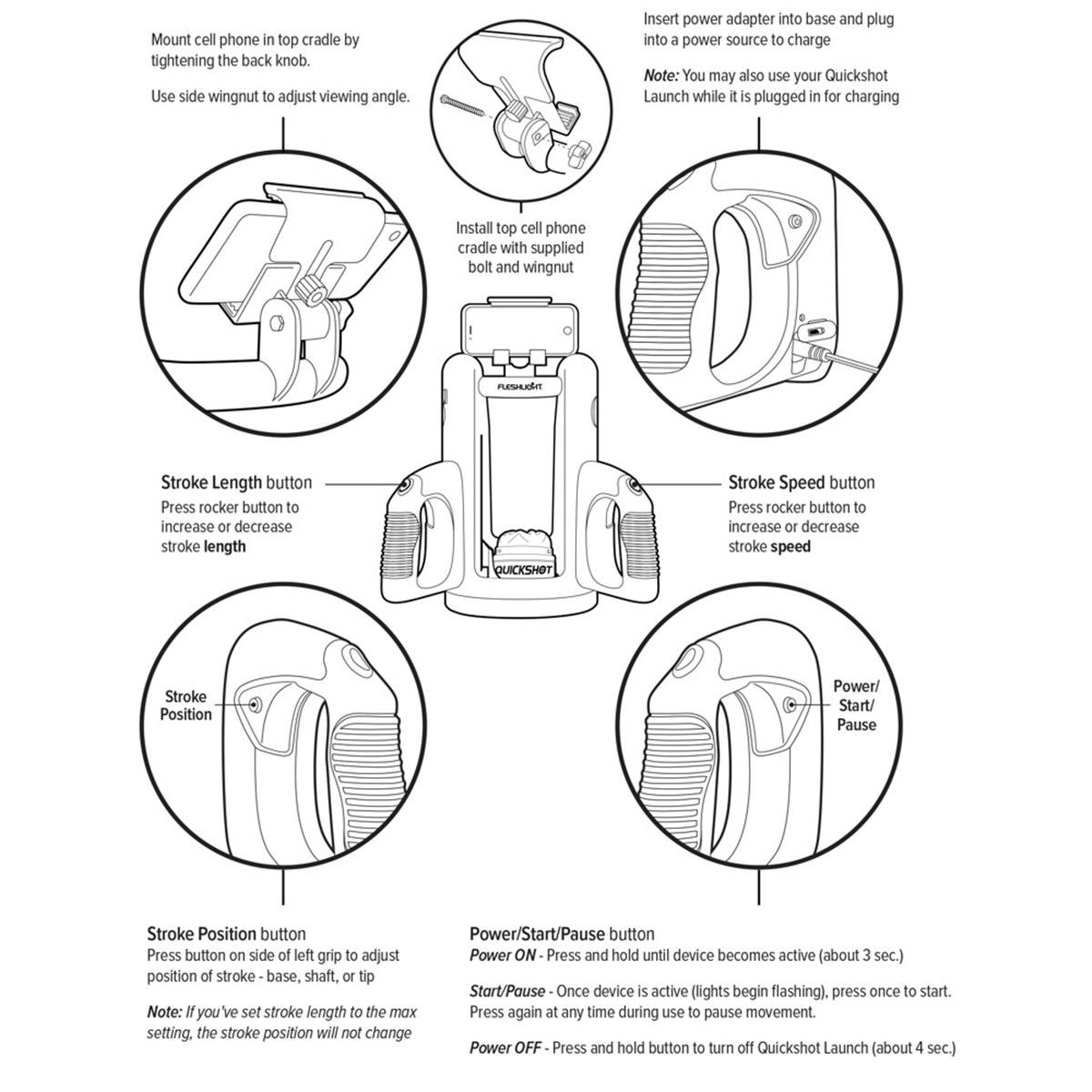 Der Quickshot Launch ist ein vollautomatischer Masturbator-Adapter, der mit jedem Quickshot von Fleshlight (nicht beiliegend) kombiniert werden kann. Der Masturbator wird einfach in dem Quickshot Launch fest und sicher platziert und bewegt sich dann bequem per Knopfdruck automatisch hoch und runter. 4 verschiedene Stoßlängen (Basis, Schaft, Spitze) und 4 Geschwindigkeiten mit max. 250(!) Stößen pro Minute sorgen für ein abwechslungsreiches intensives Vergnügen.