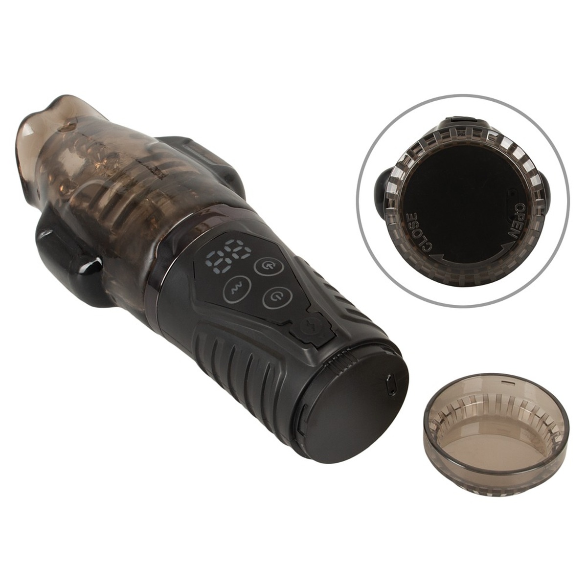 Für die einfache Reinigung wird die softe Manschette einfach nach außen umgestülpt und am Masturbator-Ende die Auffangkappe abgeschraubt. Der Masturbator ist IPX6 wasserdicht.