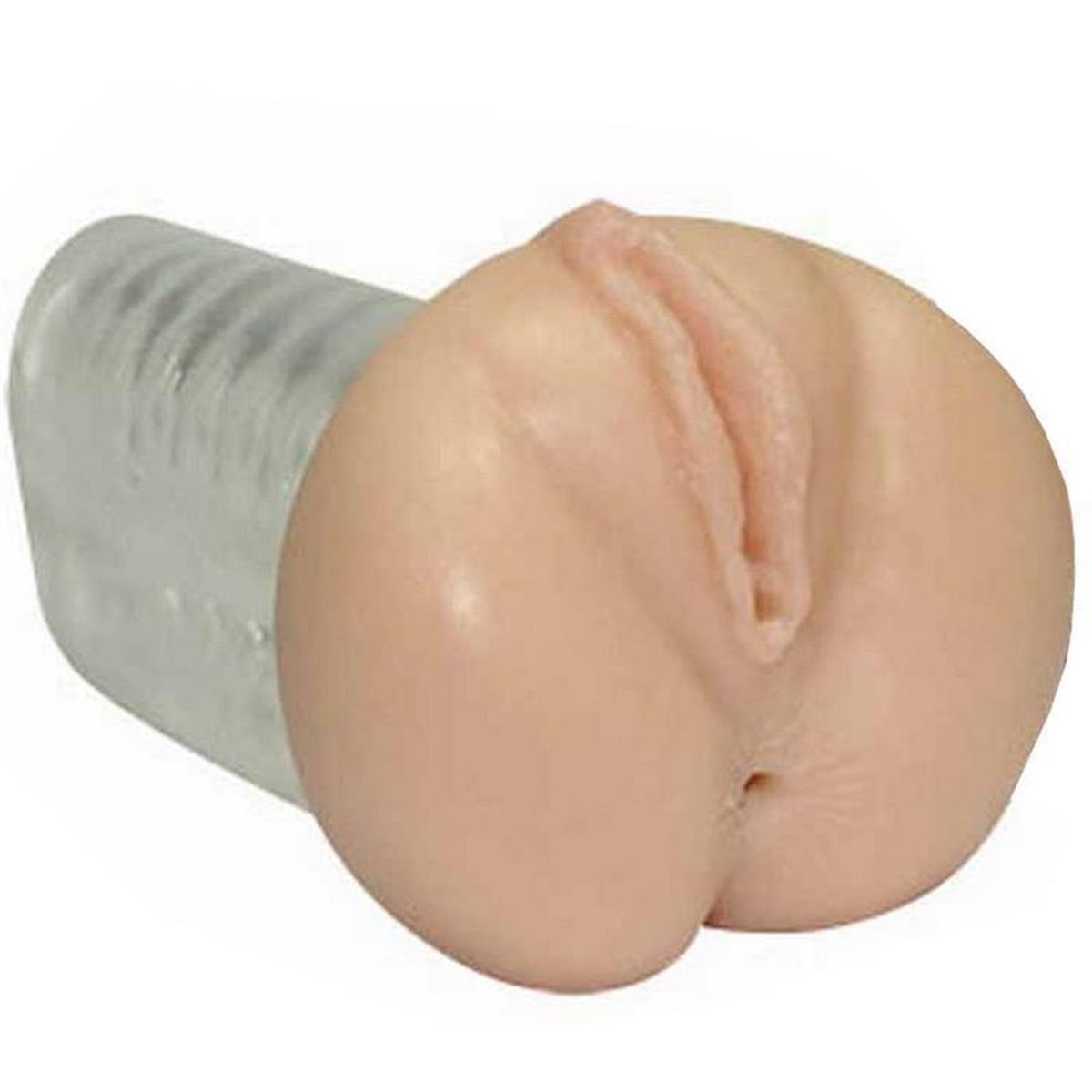 Hautfarbener Vagina/Anus-Masturbator in Lebensecht-Optik mit stimulierenden Reizrillen und dehnbaren Lustkanälen (Ø 1 cm). Ca. 17 cm lang. Material: TPE.
