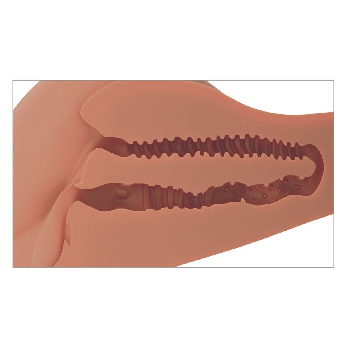 Die beiden engen und dehnbaren Lustkanäle sind innen aufwendig und abwechslungsreich strukturiert. Das sorgt für eine intensive Stimulierung und eine Massage, die du so schnell nicht vergessen wirst.